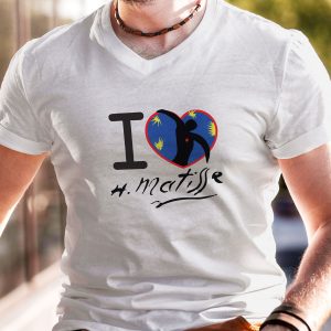 Playera para hombre de algodón en color blanco, estampada con la frase I ❤ H. Matisse, con un fragmento de su obra «Ícaro».