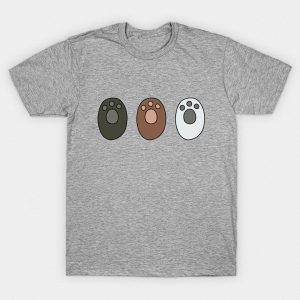 Playera de algodón en varios colores, estampada con las huellas de los personajes Escandalosos (We Bare Bears): Pardo, Panda y Polar.