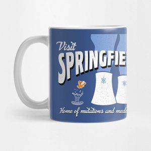 Taza de porcelana color blanco, estampada con la imagen de la planta nuclear y la frase Visit Springfield (Visita Springfield)