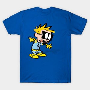 Playera de algodón en color azul rey, estampada con la imagen de Spaceman Spiff, uno de los alter egos de Calvin
