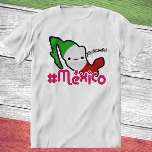 Playera de algodón en varios colores, estampada con la imagen de un simpático mapa de México feliz.