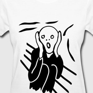 Playera de algodón para mujer en color blanco, estampada con una reproducción en negro de El Grito de Edvar Munch