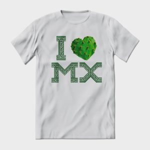 Playera de algodón en varios colores, estampada con la frase I MX, con un corazón de nopal.