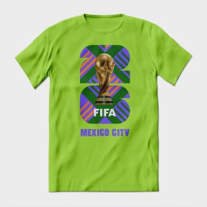 Playera de algodón en color verde lima, estampada con la imagen del mundial de fútbol de 2026, en Ciudad de México