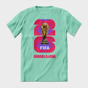Playera de algodón en color aqua, estampada con la imagen del mundial de fútbol de 2026, en Guadalajara.