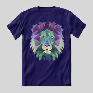 Playera de algodón en color morado, estampada con la imagen de un león poligonal.