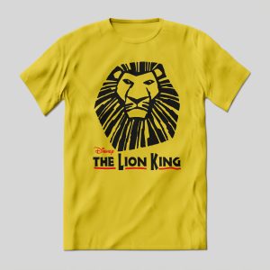 Playera de algodón en color amarillo, estampada con la imagen del Rey León, de la obra musical.