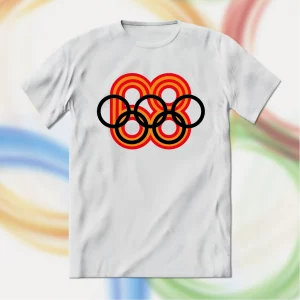 Playera de algodón en color blanco, estampada con el 68, de la identidad de los Juegos Olímpicos de México 1968.