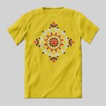 Playera de algodón en varios colores, estampada con la imagen de una mandala.